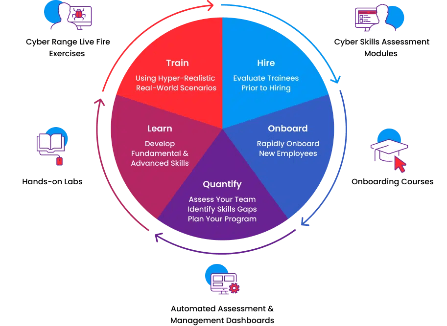 Cyberbit delivers role-focused courses that begin with practical labs for skill development and end with live-fire cyber range exercises, providing real-world experience in handling cyber threats.